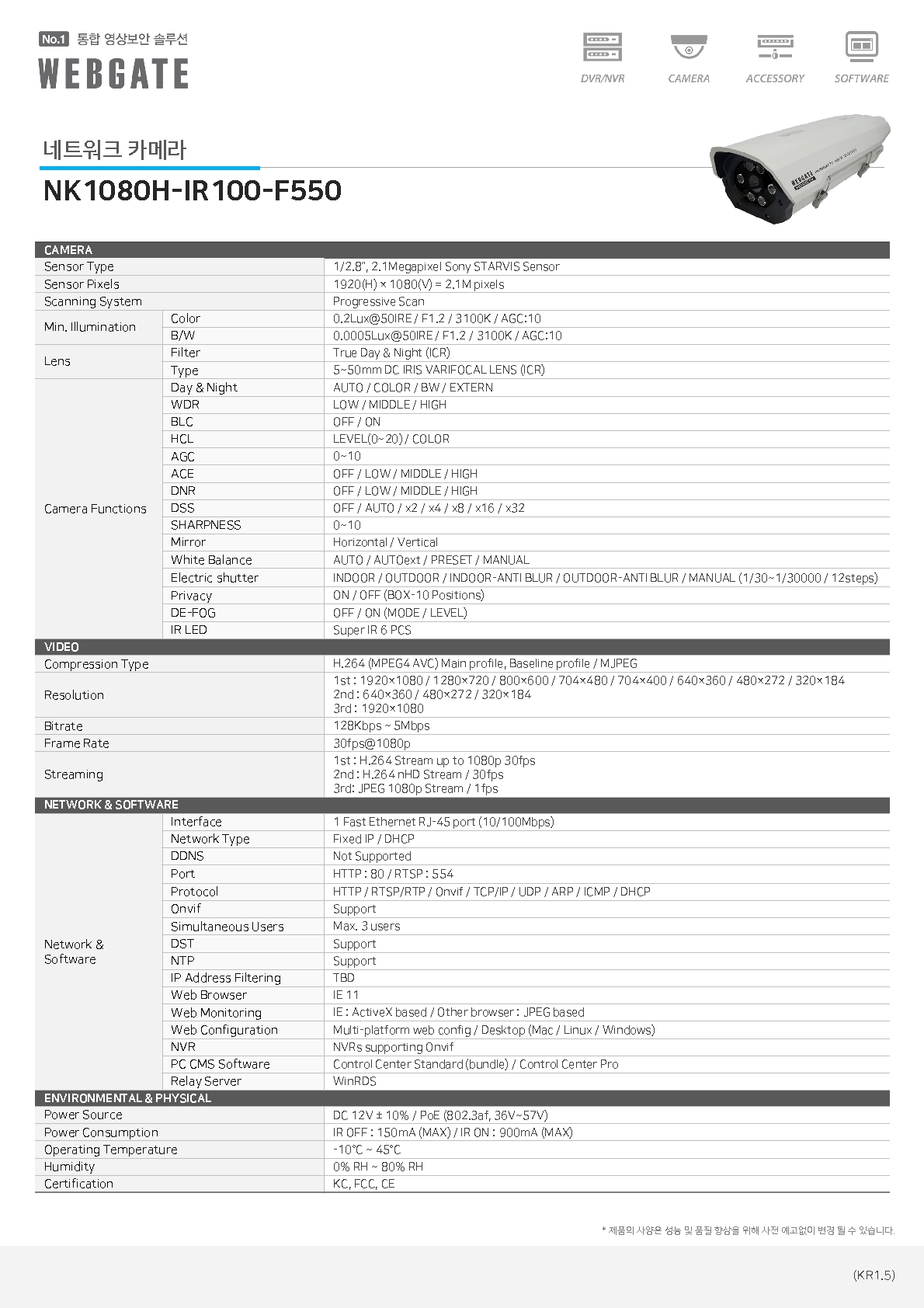 2M IR IP 하우징 카메라 (5~50mm 전동 줌 렌즈)